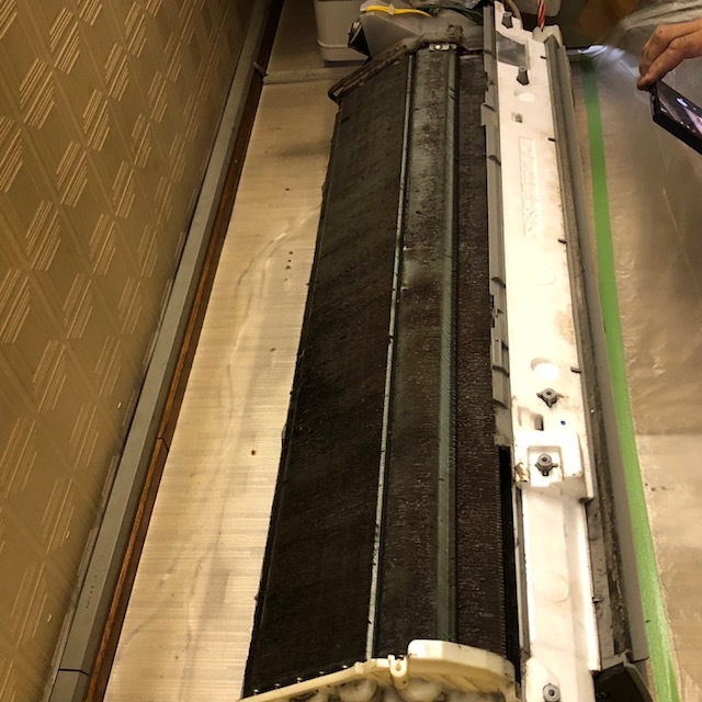 清掃をしばらく行なっていなかったので、エアコン内部は真っ黒!
