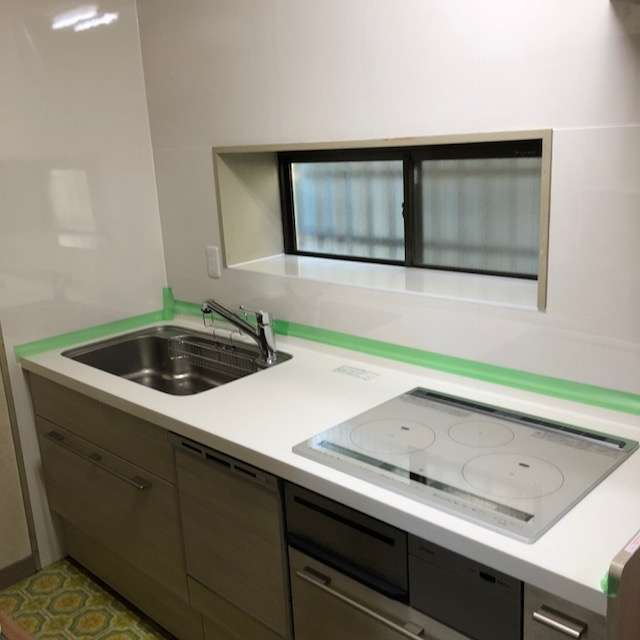 ガスコンロ→IHへの変更に伴い、システムキッチンを設置致しました。