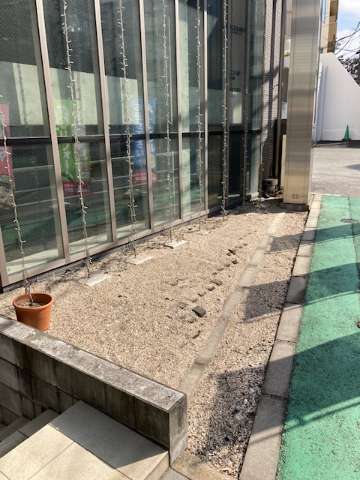 会社正面の土が少なくなってきましたので、貝砂をまいてみました。