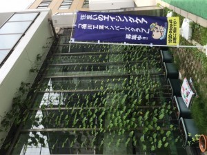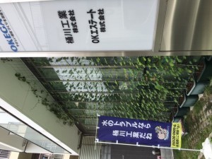 弊社正面の朝顔が成長しましたので、写真をアップします