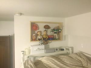 お施主さまのご要望は、二段ベッドの上段の枕元に雑貨などの小物を置けるような小さな収納スペースを設置すること。