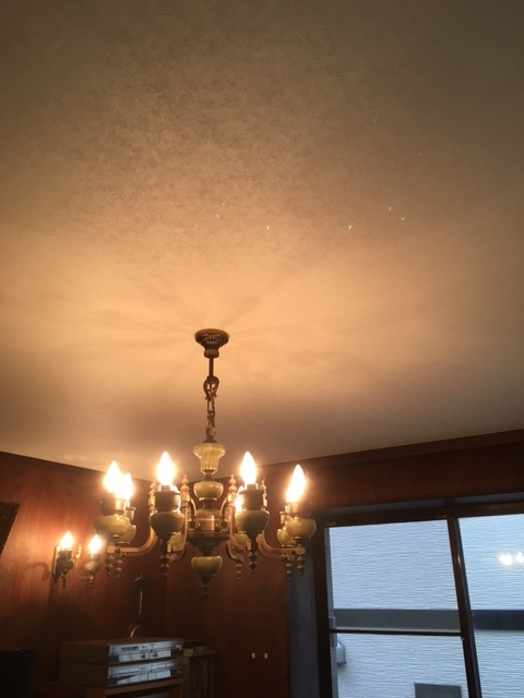2017年に雨漏りの点検のご依頼をいただきました。実際に屋根に上って見てみると、大きな破損は見られなかったのですが、ヒアリングすると、天井のクロスを30年間張り替えていないとのこと。見るとシミや剥がれが目立っていましたので、これを機に張り替えることにしました。